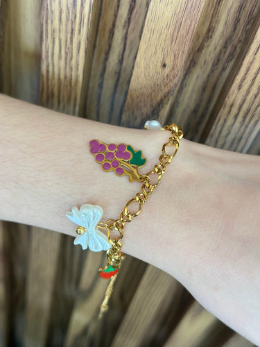Pulsera perla bolitas doradas corazon cangrejo #E20