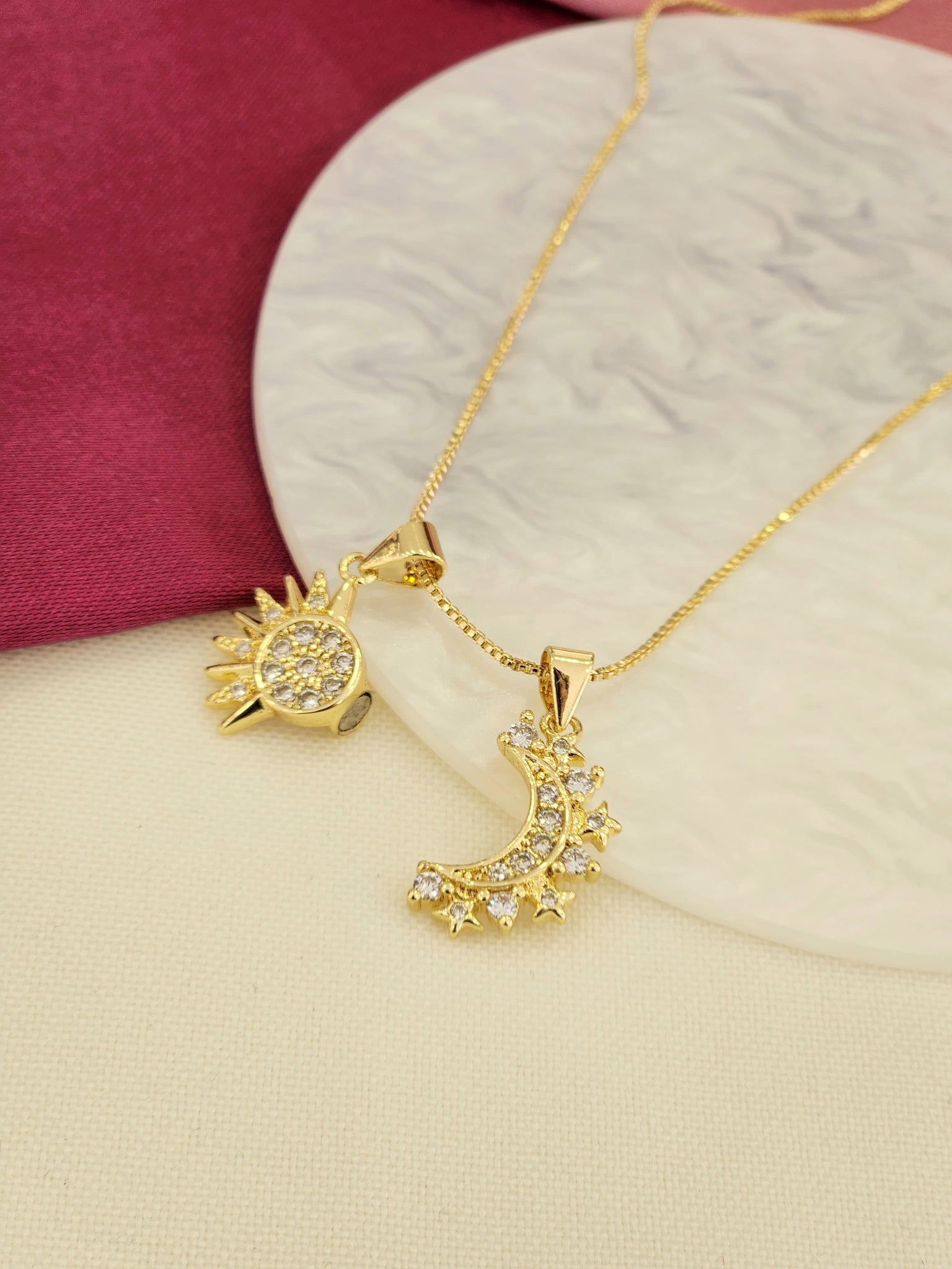 dijes de 2cm de chapa de oro y zirconias con imán para que se una los productos
