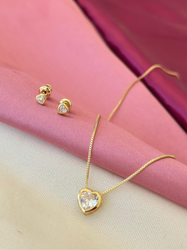 Set collar y aretes mama zirconia con corazon puntiagudo #B5